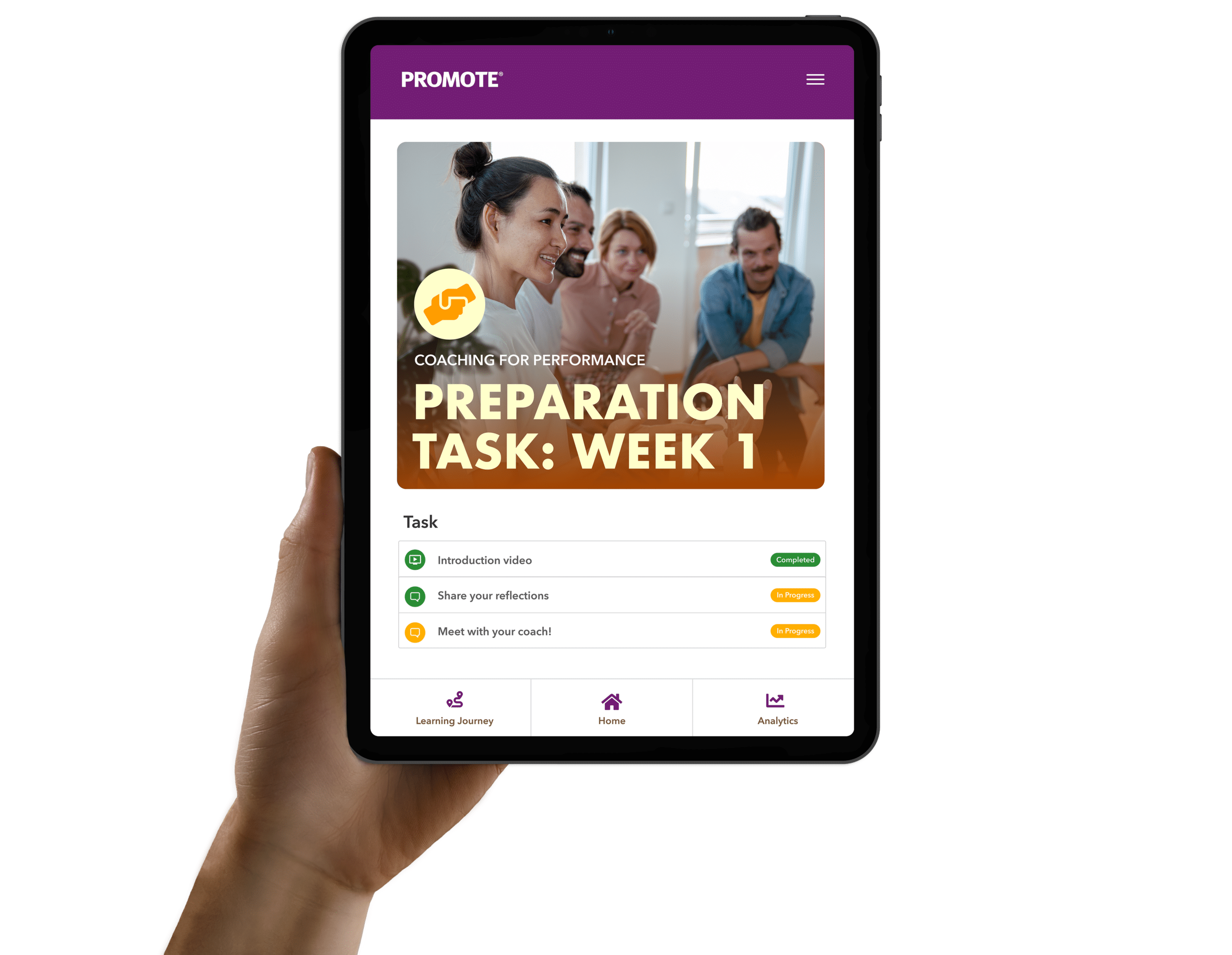 Promote assigns practical tasks and reflection that help coachees apply learning directly in their daily work.